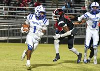Samuel Higgs / TPI Central Coosa's Zaccai Lauderdale (9) did not expect to make the playoffs in Year 2 with Daniel Flowers. However, the Cougars face Luverne in the first round.