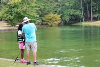 A Children's Harbor volunteer helps a camper bait a hook during a camp session.