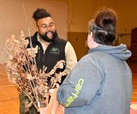 Alabama Forestry Commission Coosa County representative Braxton Lashley, left, discusses how to successfully plant trees during a tree giveaway in Rockford Friday.