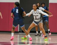 Samuel Higgs / TPI Benjamin Russell's Gabby McKinney guards the Calera point guard in the Class 6A Area 5 championship game. She finished with five points while also being named to the all-tournament team.