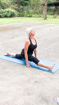 Submitted / TPI Sokol completes a yoga excercise to the song "Dancing Queen" in her backyard during the COVID-19 pandemic.