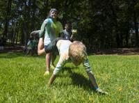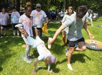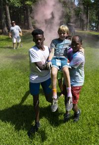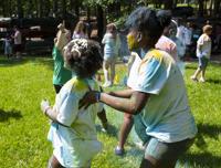 Cliff Williams / The Outlook Campers and counselors take part in the color games at Camp Conquest at Children’s Harbor. The camp is for child burn victims to give them an opportunity to be a kid.