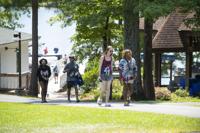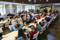 Cliff Williams / The Outlook Campers and counselors at lunch at Camp Conquest at Children’s Harbor. The camp is for child burn victims to give them an opportunity to be a kid.