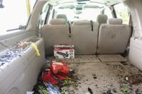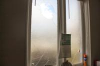 Pastor CJ Marbutt dedicated Monday to picking up shards of glass which formerly comprised stain glass windows at his church, First Universalist Church of Camp Hill.