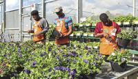 Top, Home Depot employees Tyrus Jones, Quien Edwards and Keandrea Kendrick work on putting out plants at the store in Alexander City Friday afternoon. With the weather warming up, Tallapoosa County Extension Coordinator Shane Harris suggests cleaning up fallen leaves and pruning some plants, but not all.