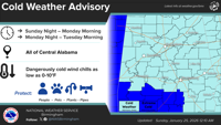 An extreme cold watch is in effect throughout Central Alabama, and to combat such possible temperatures, warming stations are opening around Tallapoosa County and a local church is opening its doors tonight and Monday night.