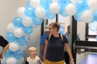 Students rushed toward to school's entrance as the tour began, anxious to explore the new school.