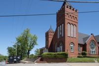Cliff Williams / The Outlook The steeple at First United Methodist Church is still open to the elements following Tuesday’s fire. The Alexander City Fire Department could only set up its ladder truck on Semmes Street because of power lines along Green Street.