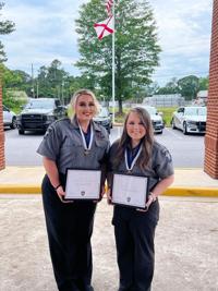 Sheriff Jimmy Abbett and chief deputy Fred White recognized Hanna Adcock and Rachel Davis with the county’s 911 dispatch during an award ceremony on May 18.