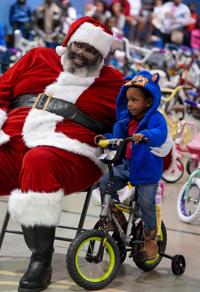 Santa makes an appearance at the lil' Jap Christmas Bike Giveaway in Alex City , Ala on Thursday, Dec. 23, 2021. Over 275 bikes were given away to Alex City kids. [Alex City Outlook/ Jake Arthur]