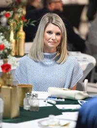 Meacham Marketing Co. owner Lindsay Meacham realizes she is the winner of the Business Person of the Year award during the Alexander City Chamber of Commerce's annual banquet.
