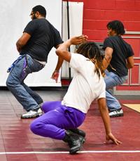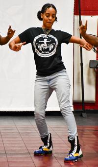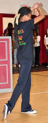 Gwen Bishop / TPI Dancers from the Miles College Tau Beta Sigma sorority performed during the Black History Month program at Alexander City Middle School.