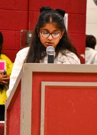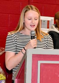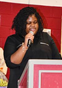 Gwen Bishop / TPI Former Alexander City Schools superintendent Dr. Beverly Price giving the keynote address at Alexander City Middle Schools Black History Month program stressing the importance of education and choice.