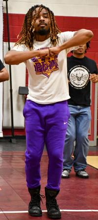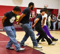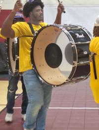 Gwen Bishop / TPI The Miles College Purple Marching Machine drumline closed the Alexander City Middle School Black History Month program with a selection of several songs.