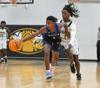 Samuel Higgs / TPI Central Coosa's Waylon Chapman-Allen snatches a steal on Dadeville's Justic Young. Chapman-Allen leads the team with 4.5 steals a game, he is the Outlooks Player of the Week.