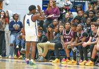Samuel Higgs / TPI Central Coosa's Waylon Chapman-Allen celebrates in front of the Benjamin Russell bench after hitting a 3-pointer. He finished with 24 points against the Wildcats.