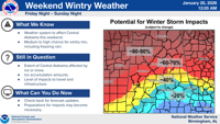 From Friday night through Sunday night, Central Alabama has a medium to high chance of seeing a wintry mix including freezing rain and a shot of frigid air.Â
