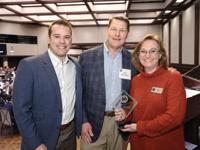 Submitted / Russell Lands From left, Benjamin Hendrix and Russell Lands president David Sturdivant accept the award for Philanthropic Project of the Year from Business Alabama editor Erica West.