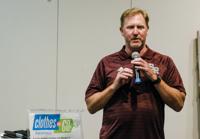 Lizi Arbogast / The Outlook Benjamin Russelll football coach Kevin Smith speaks to the crowd during the drawdown dinner Tuesday night at The Mill Two Eighty.