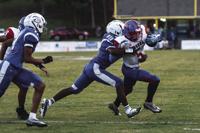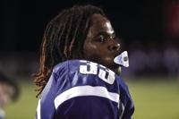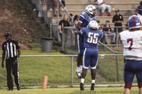 Defensive back Damarkus Sandlin (6) celebrates a big hit against Verbena. August 19, 2022.