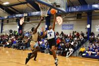 Henry Zimmer / The Outlook Coosa's Demarkus Sandlin goes up for a game-sealing dunk in the wanning seconds of Coosa's area tournament championship victory over Comer on Feb. 09, 2023.