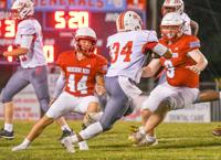 Samuel Higgs / TPI Horseshoe Bends' Bryce Jordan (44) and Aaden Jones (9) look to slow down the Loachapoka run game. The Indians are 2-2 in region play.