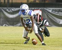 Samuel Higgs / TPI Central Coosa's Ja'Von Peterson (1) faced constant pressure from the Loachpoka defensive line. The offense finished the night with four total turnovers.