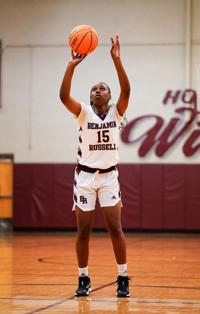 Tyliciya Calhoun at an AHSAA basketball game between the Benjamin Russell Wildcats and the Opelika Bulldogs at Benjamin Russell High School in New Site, Ala on Tuesday, Nov. 30, 2021. [Alex City Outlook/ Jake Arthur]