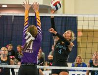 Samuel Higgs / TPI Dadeville's Aziah Lockhart (4) goes for a spike against Reeltown.