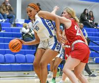 Samuel Higgs / TPI Central Coosa's Jalea Burton fights her way into the pain while guarded by Horseshoe Bend's Paislee Sharpe. Burton finished with 15 rebounds and five points against the Generals.