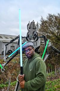 Life-size handmade replica of General Grievous pictured in Moe Hunter's flat. (Moe Hunter via SWNS)