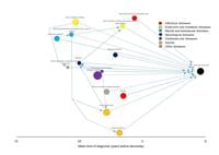 Associations between dementia-related diseases. For clarity, the figure illustrates associations between 14 of the 29 dementia-related diseases identified in the study (all 29 diseases are shown in Fig 4 of the paper in PLOS Medicine). (Sipilä PN, et al., 2026, PLOS Medicine, CC-BY 4.0 via SWNS)