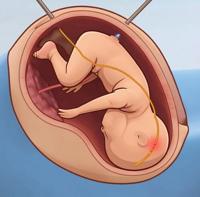 This illustration shows how the new probe enters a surgical port to reach a fetus in utero. (John A. Rogers / Northwestern University via SWNS)