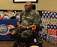 Bill Nichols State Veteran Home resident council president Henry Harris shares the hardships he has faced as a veteran and thanks the participants for their donations.