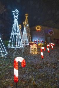 A dazzling array of holiday lights welcomes visitors at Lake Martin