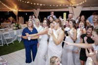 Chapman and Humber filled their celebration with many meaningful details, from having Humber’s uncle officiate to asking guests to sign snow skis – a nod to the couple’s annual winter passion. The reception featured a live painting by Lila Graves and a nostalgic performance of the “2-Bits” cheer by Chapman and her bridesmaids. Guests sipped on John Dalys and lavender lemonade signature cocktails.