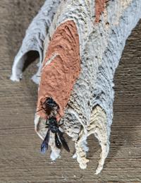 These docile wasps need three things to make a perfect home: A source of mud (like the shore of a lake), protection from rain (the same as anyone who lives in a mud house) and spiders (which set up shop around any building that is lit up at night; and this condition seems to be multiplying more and more each year around Lake Martin).