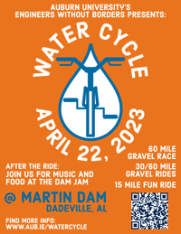 Adding a timed race element and a 15-mile fun ride this year, Auburn University’s Engineers Without Borders will hold the Second Annual Water Cycle event at Lake Martin Dam Saturday, April 22.