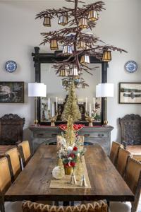 An elaborate Christmas village sits atop the couple’s custom-made canoe table