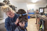 Tara Bramblett Newberry watched a brown and white dog roll around in the leaves and grass outside Southern Star Pet Grooming and Boarding. This happy puppy’s name was Molly. Molly rolled onto her back, begging for a belly rub with her paws hanging beneath her chin, knowing Newberry would bend over to pet her. She did, and the dog smiled, its tongue hanging out as Newberry recounted the pup’s rescue story.