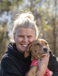 Tara Bramblett Newberry and one of her rescues, Bingo, cuddle up with one another. Bramblett cares for about 50 dogs, many of which she's rescued from various areas around Lake Martin. It's hard work, but moments like these are what make it worthwhile.