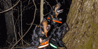 kAm%9:D >62?E E92E E96 5@8D H6C6 EC665 @? EH@ 5:776C6?E EC66D ?62C 6249 @E96C] %96 8C@FA 564:565 E@ DA=:E FA[ H:E9 #J2? |@D6=6J 2?5 {66 }@C6== C:5:?8 E96 !@=2C:D p%' E9C@F89 E96 52C< H@@5D E@ 2AAC@249 E96 5@8D 7C@> E96 ?@CE9 D:56 @7 E96 4C66<] %96 C6DE @7 FD =@2565 :?E@ E96 ECF4<D 2?5 EC:65 E@ 2AAC@249 E96 5@8D 7C@> E96 D@FE9] (6 5C@G6 2D 72C 2D H6 4@F=5 :?E@ E96 H@@5D] (96? H6 8@E @FE H6 4@F=5 4=62C=J 962C E96 5@8D EC66 32C<:?8 2D 92C5 2D E96J 4@F=5]k^Am
