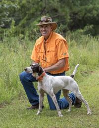 Greg Keiser trapped a pigeon in a bird launcher placed among the tall grass. When he released his pointer from its box, the dog “went crazy” darting up and down the area until he came to a complete stop, frozen like a statue.