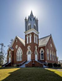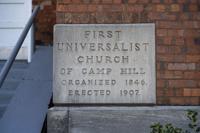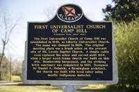 Once the largest Universalist Church in the southeastern United States, First Universalist Church of Camp Hill originally met under a brush arbor in 1846 on the present site of Mt. Lovely Baptist Church. A simple cabin soon replaced the arbor and served until 1884 when a larger wood-frame church was built on the current site. The stately red brick church that still stands today was completed in 1907.