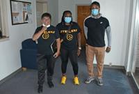 Siri Hedreen / The OutlookNicole Sumner (left), Tianna Summers and Cody Brown pose for a photo in the darkened lobby of Camp Hill Town Hall Monday after the power went out during their meeting with the mayor and council.