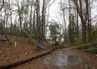 Cliff Williams / The Herald The first line of storms to pass through Elmore County Tuesday afternoon brought winds that downed trees, power lines and damaged homes. Residents and volunteers were trying to cover this home on Lightwood Road on Lake Jordan before the next round of rain.