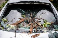 A broken windshield from a fallen tree near 63rd and Maple Streets.