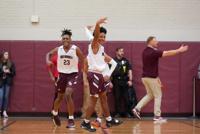 Weston Blake celebrates during an AHSAA basketball game between the Benjamin Russell wildcats and the Central Coosa cougars at Benjamin Russell High School in Alexander City on Friday, Jan. 28, 2022. Benjamin Russell won the game 70-51. [Jake Arthur/ Tallapoosa Publishers]