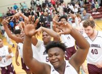 Za'corrion Milliner celebrates during an AHSAA basketball game between the Benjamin Russell wildcats and the Central Coosa cougars at Benjamin Russell High School in Alexander City on Friday, Jan. 28, 2022. Benjamin Russell won the game 70-51. [Jake Arthur/ Tallapoosa Publishers]
