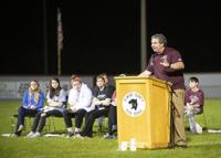 Cliff Williams / The Herald Elmore County High School band director Anthony Vittoregreets Gardner Cameron’s father, David Cameron before a candle light vigil honoring the 16-year-old student.